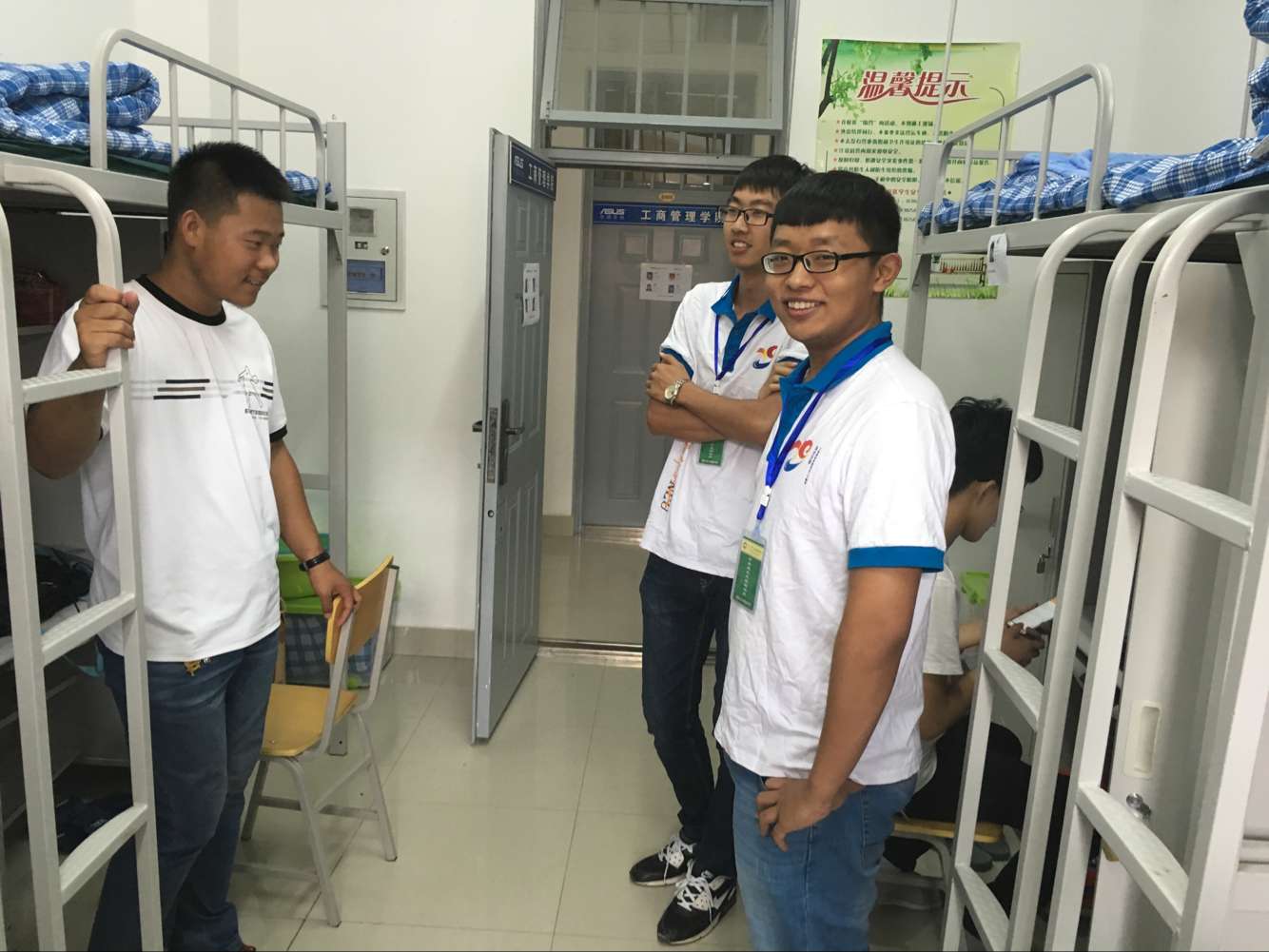 2016级学生成长发展指导员。这种出场方式,令人想起王菲的经典歌曲:只是因为在开学时多看了你一眼,再也没能忘掉你容颜。2016年9月10日正值第32届教师节,成人抖音 2016级新生在的浑南校区迎来了报到日。为使大一新生更快适应大学生活,熟悉浑南校区的校园环境,由成人抖音 2016级学生成长发展指导员组成的“商英导航团”身穿文化衫,佩戴工作牌,8点30分准时到各自负责寝室等候,迎接新生的到来。