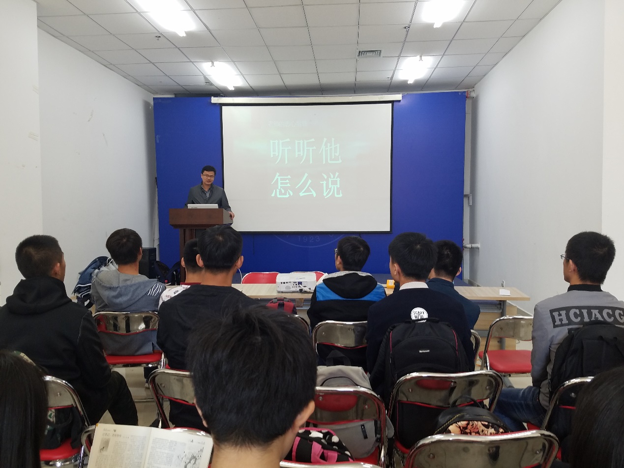 见面会主要围绕班级学风建设和个人发展的问题进行讨论。活动伊始,团支书高馨同学介绍了本班学习和活动的一些基本情况,随后蒋老师就该班整体情况提出了三点建议:首先,班干部要协调好学习和工作的关系,大三要重点把精力放在学习上,对自己要有清晰的定位,保证学习成绩较好再去考虑是否做学生工作;其次,针对该班同学学习成绩两极分化比较严重的问题,蒋老师建议学习好的同学要帮助成绩靠后一些的学生,形成一对一的互助小组,这样既有利于成绩好的同学感受到自身的价值,还可以让学习成绩稍差的同学感受到班级的温暖,以此形成良好的互助氛围,争取保证班里每个同学的共同进步,避免出现“贫富差距”悬殊的问题;最后,蒋老师就同学未来规划方面给出了中肯的建议,他指出读研的同学要对自己有一个清晰的定位,在读研择校时一定要慎重考虑,准备找工作的同学也要认清楚自己未来的就业方向,做到未雨绸缪。之后,同学们就考研、工作等问题和蒋老师进行了进一步交流。