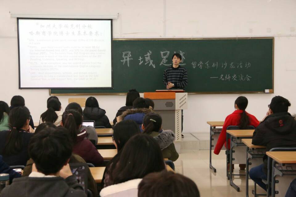 安岗老师根据自身在美国加州大学伯克利分校的留学经验,从“外国老师喜欢什么样的学生”、“东大学生的出国途径”和“出国需要准备的工作”三方面就国外高校学习环境、教学理念、专业知识的教授形式及方法进行了详细全面的介绍,并对同学们的疑问一一做出解答。他将自身经历作为实例为同学们形象地阐述他的观点,时而严肃认真时而幽默风趣的讲述赢得了一阵又一阵掌声。参与活动的一位同学激动地说“听了安岗老师的讲座我才真正确定了我努力的方向”。最后,石天老师对本次交流会进行总结,并向安岗老师表示感谢。