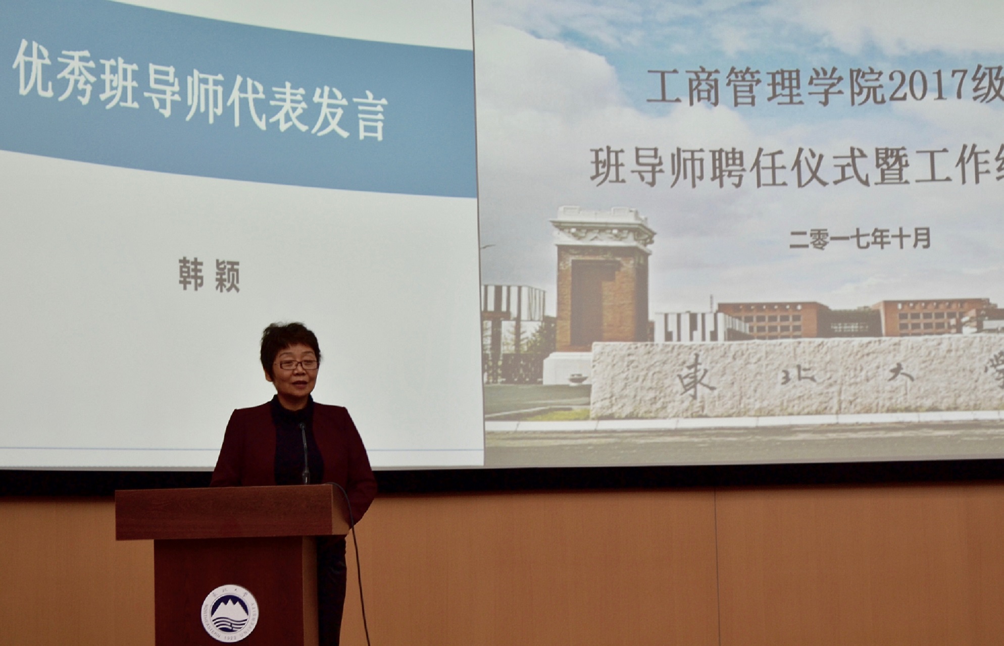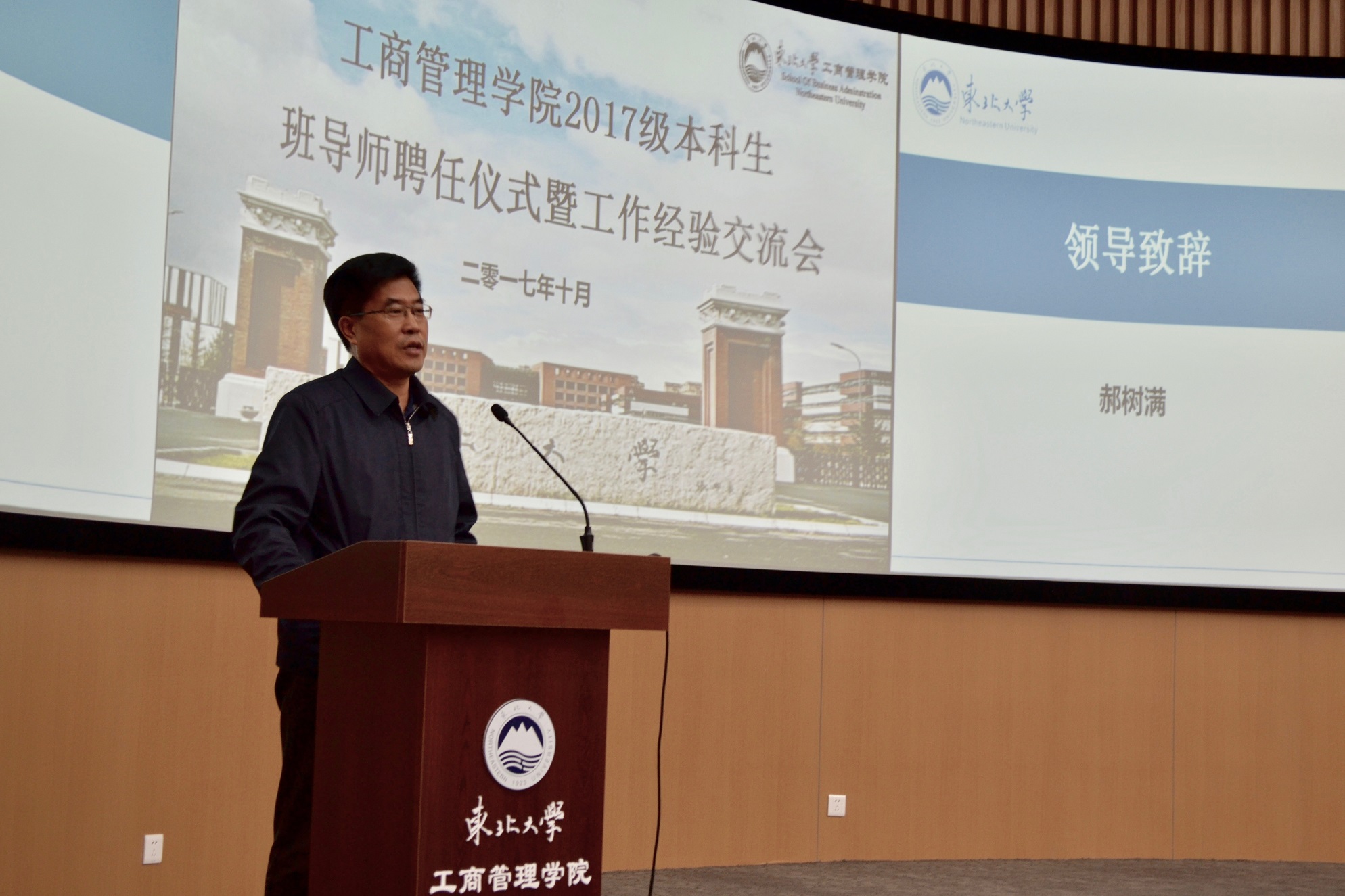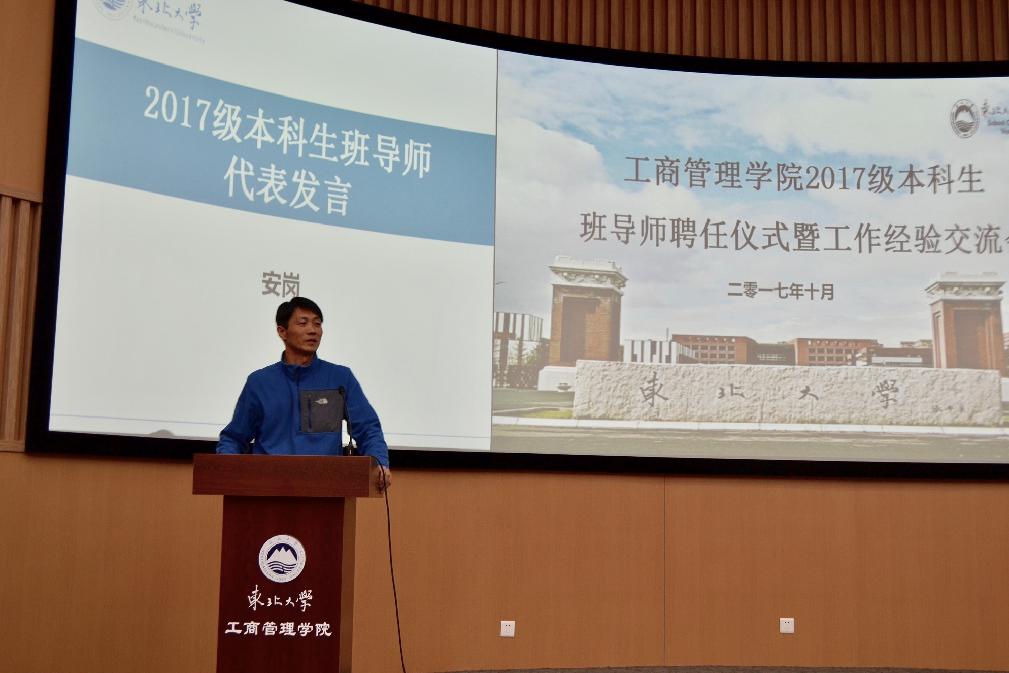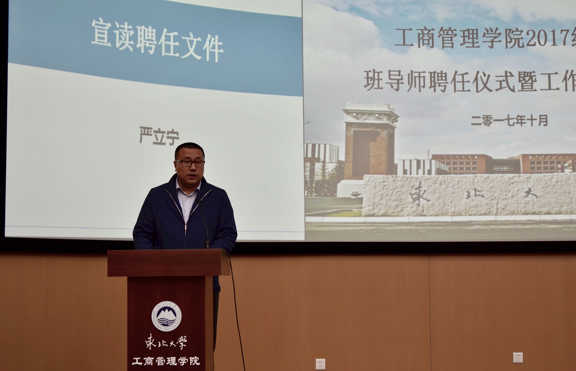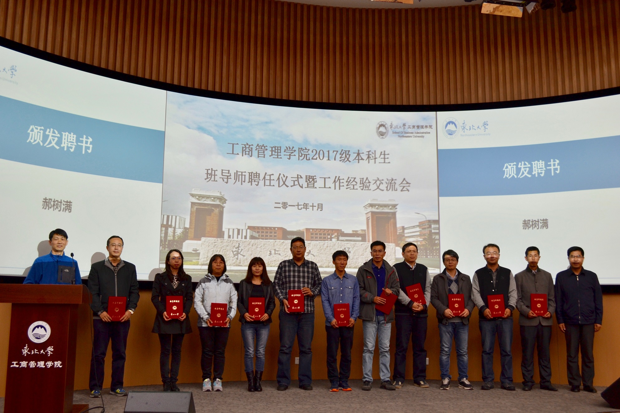 10月11日下午14:00,成人抖音 2017级本科生班导师聘任会暨班导师工作交流会在浑南校区文管B450举行。学院党委书记郝树满、学院党委副书记兼副院长严立宁、校优秀班导师韩颖、2017级本科生班导师及学生工作办公室的各位老师出席本次大会。会议由杨光主持,2017级各班班委及年级会成员参加。