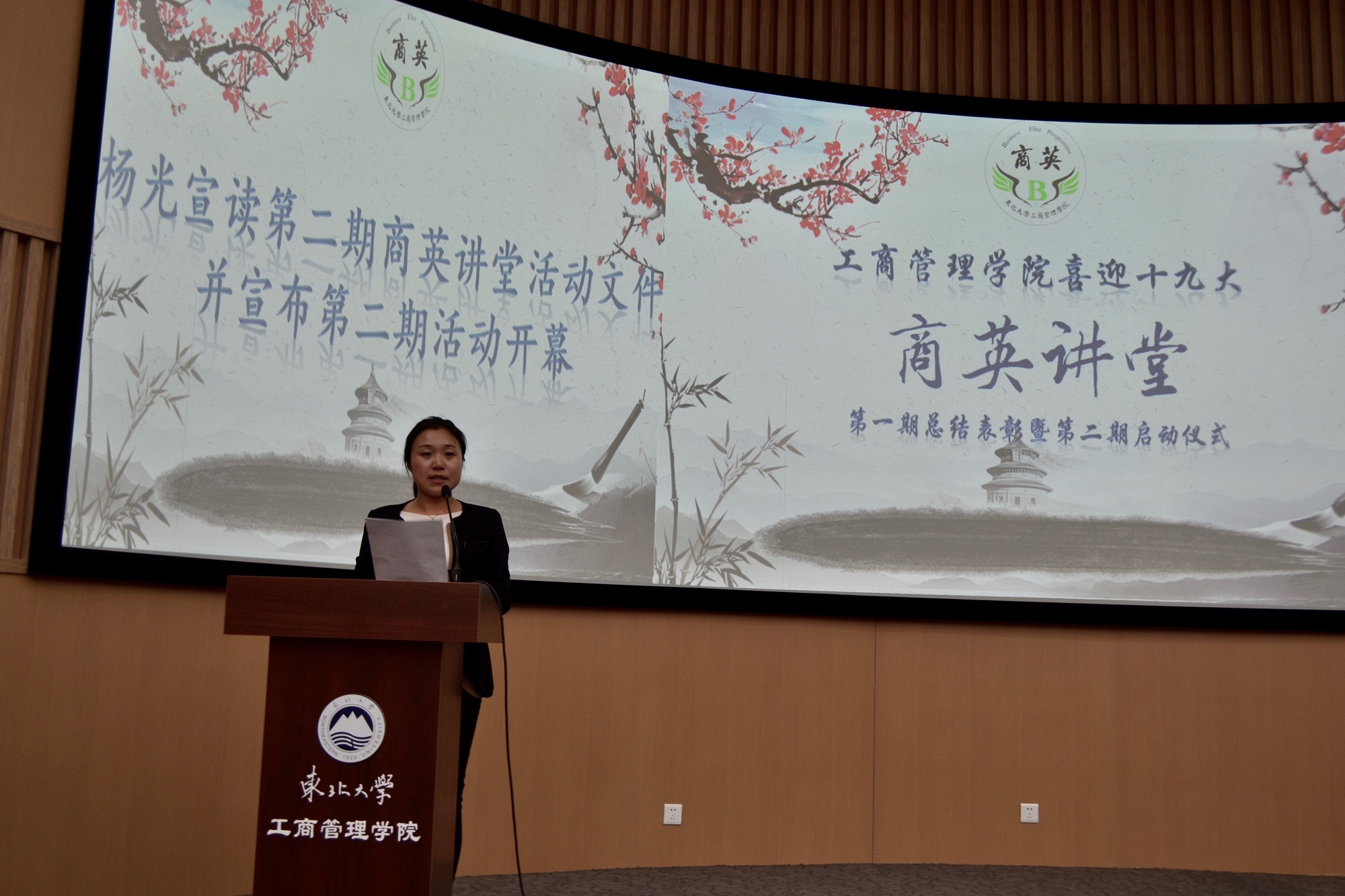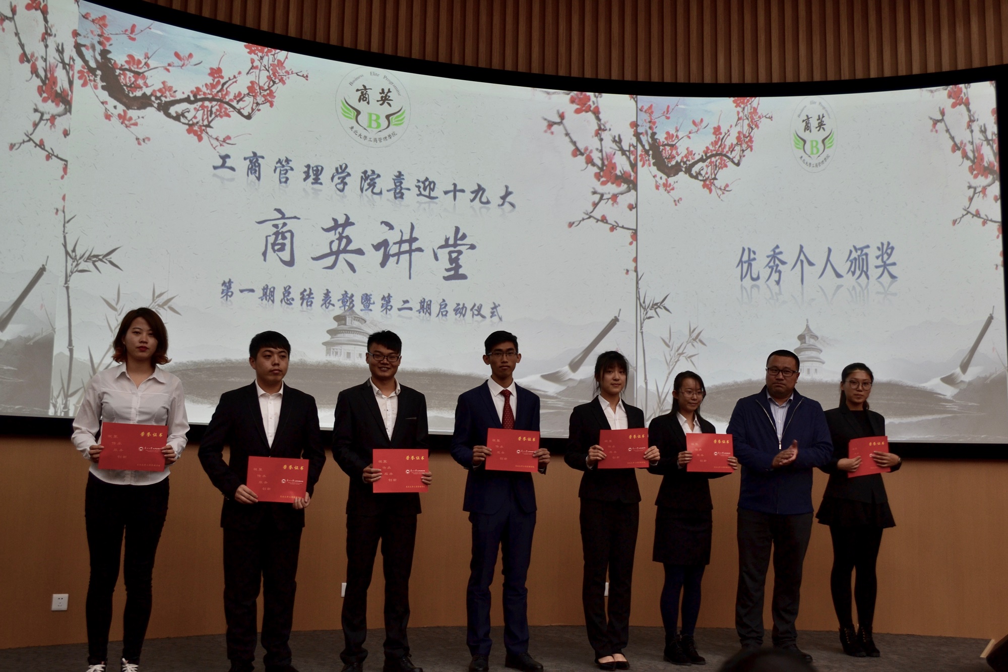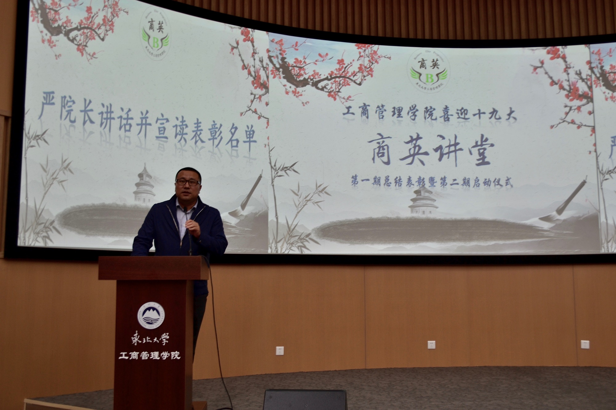 会议开始,严立宁发表讲话。他充分肯定了第一期“商英讲堂”主题分享会取得的成果,指出“商英讲堂”是展现管院学生风采、提升学生综合能力的有效平台。严院长勉励同学们砥砺前行,勇于担当,不断提升自我、挑战自我。严立宁宣读了第一期表彰名单,并为优秀个人及优秀团支部颁奖。