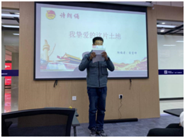 薄富帅同学朗诵《我挚爱的这片土地》爱国诗篇,激情豪迈的声音与真挚深切的情感点燃了大家心中不息的爱国情、强国志。通过猜红歌游戏,同学们以轻松的方式,唤起了内心中的红色记忆,唱出了新时代的感动,并立志将红色经典文化内化于心外化于行,将红色精神在实践中传承和发扬。团日的最后,班导师戚桂清进行总结讲话。