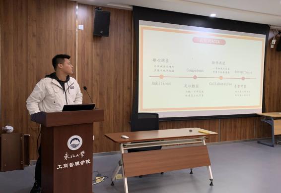 第二环节“导师风采”中,班导师周黎明老师向大家介绍了会计学ACCA方向班的发展规划,从考研(保研)、就业、出国留学三重维度向同学们展示了ACCA班的大好前景。周老师肯定了大家选择ACCA方向班的勇气与决心,虽然任重而道远,课业繁忙外还有考证压力,但是拥有多年班导师经验的周老师表示会一路为同学们指明方向、保驾护航。周老师不仅解答了同学们关于发展规划上的疑惑,更关心同学们的校园生活。她建议同学们要养成早睡早起的生活习惯,坚持运动以强健体魄,“健康是最前面的‘1’,其它一切都是后面的‘0’”。周老师的指点让同学们获益匪浅,对自己未来的道路又明晰了许多。
