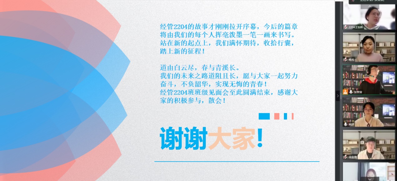通过本次主题班会,同学之间、师生之间的距离被快速拉近。“道阻且长,行则将至;行而不辍,未来可期。”期待着经管2204班在通往梦想的路上乘风破浪,行稳致远。 (经管2204班 供稿)
